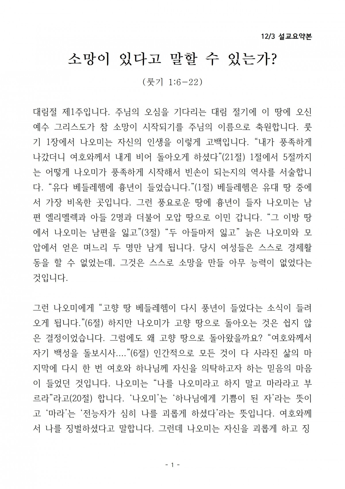 [2023년 12월 3일] 주일말씀요약 > 공지사항