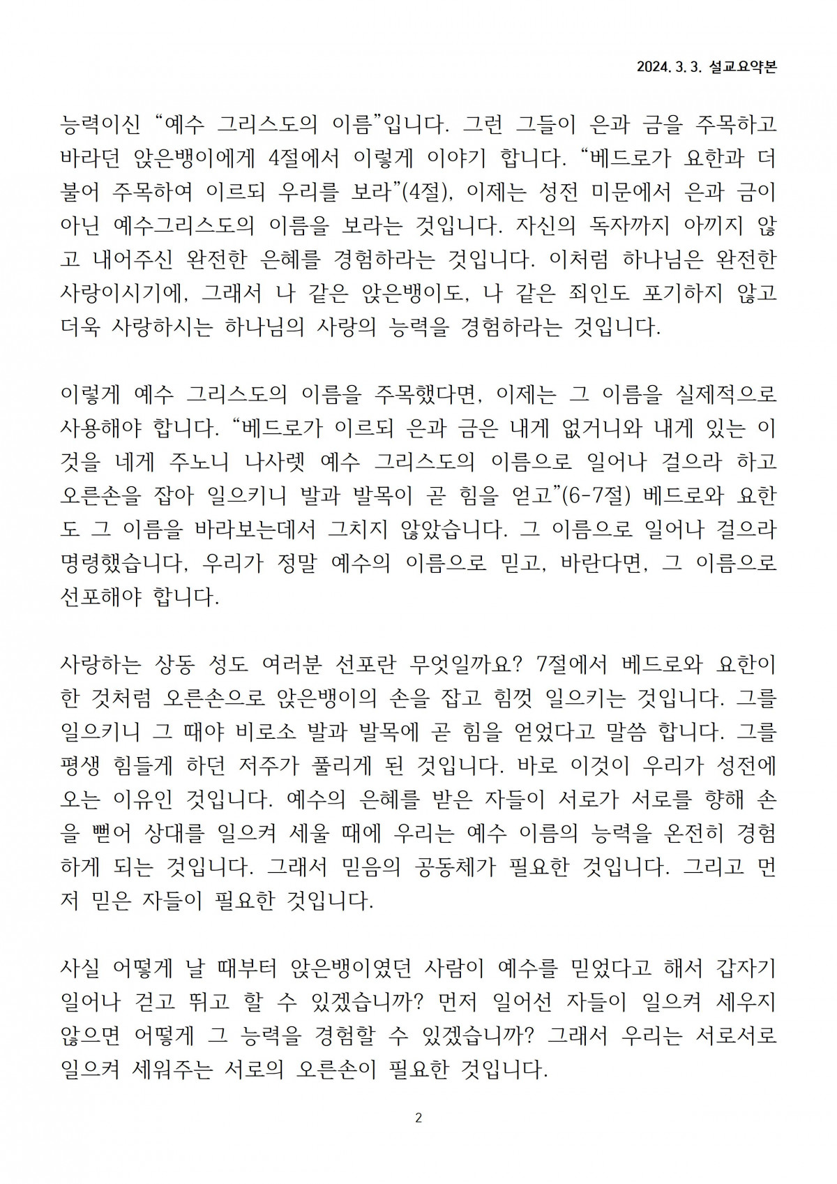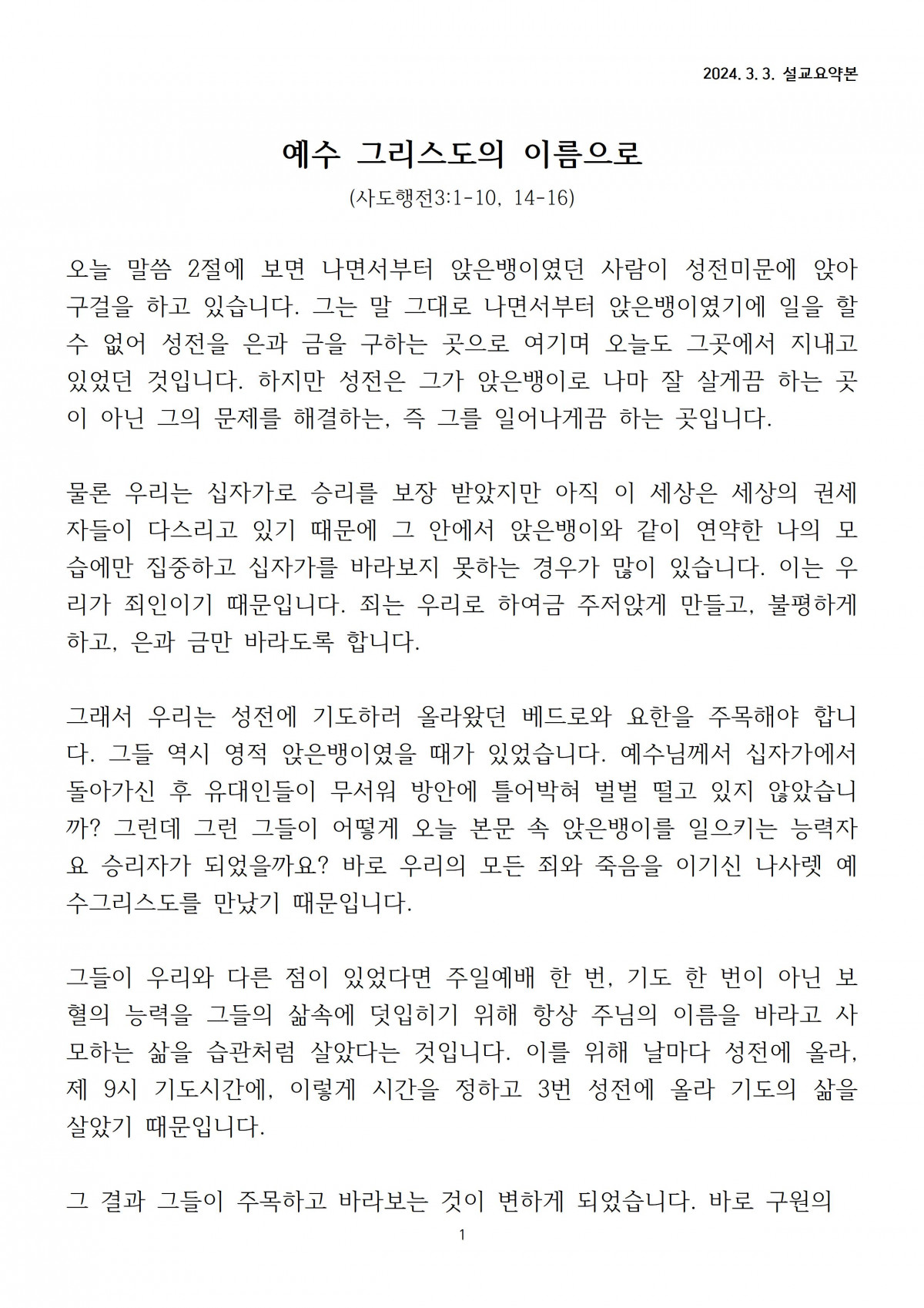 [2024년 3월 3일] 주일말씀요약 > 공지사항