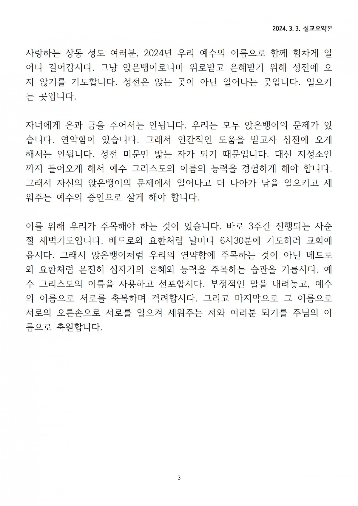 [2024년 3월 3일] 주일말씀요약