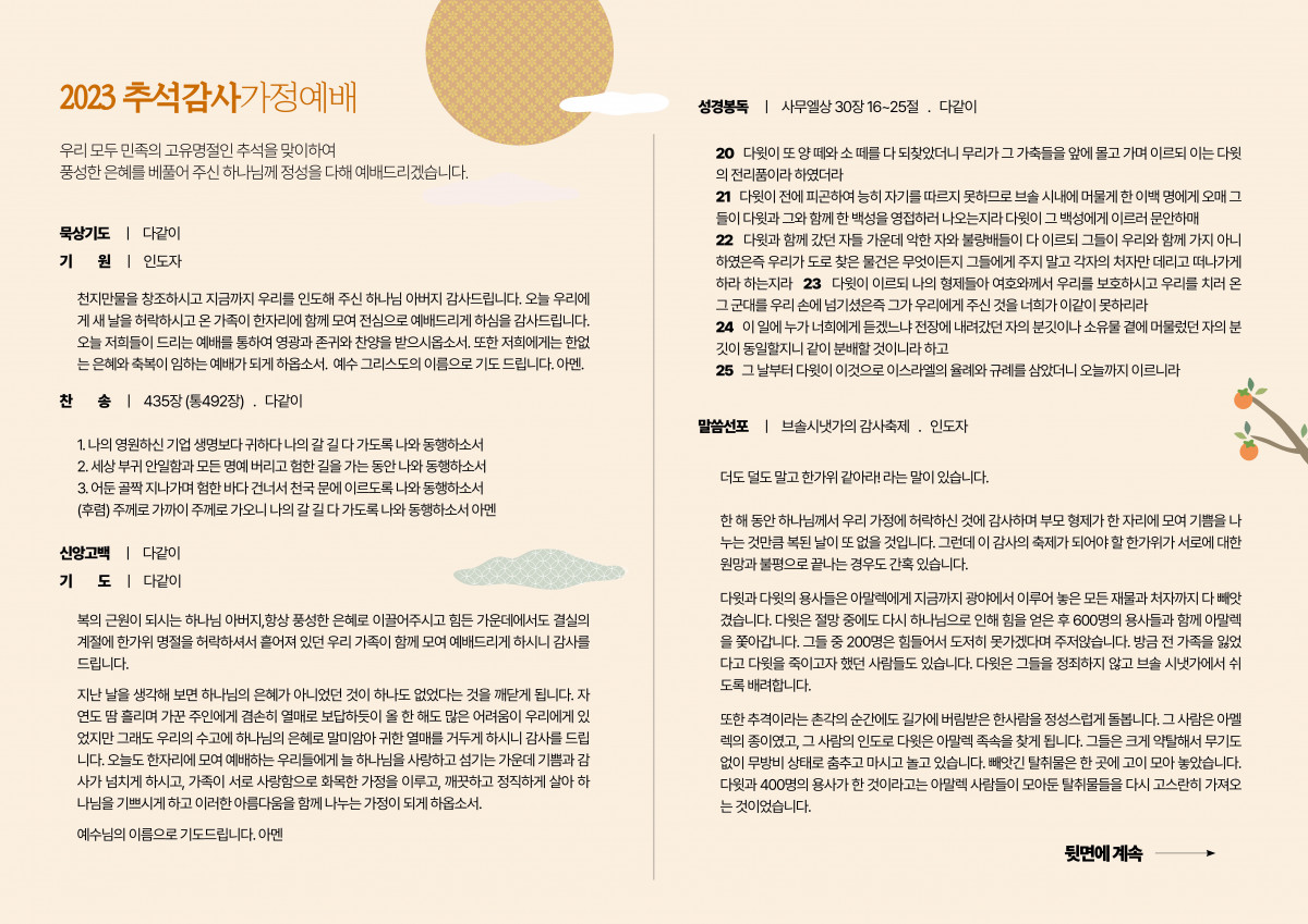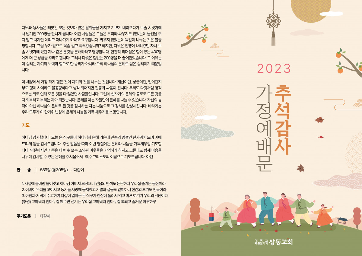 행복한 추석 연휴 되시길 기원드리며 가정예배시 활용하시기 바랍니다.