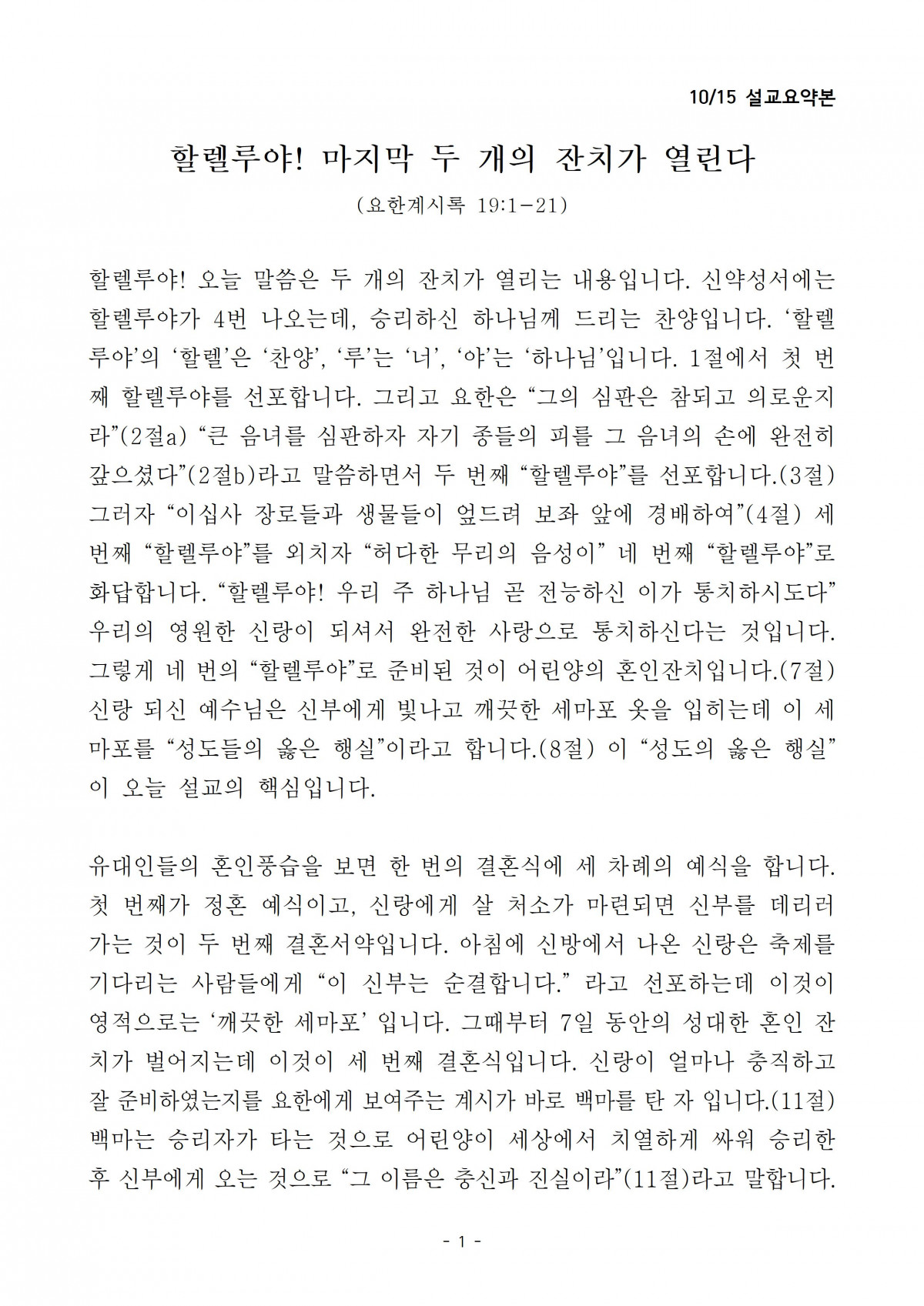 [2023년 10월 15일] 주일말씀요약 > 공지사항