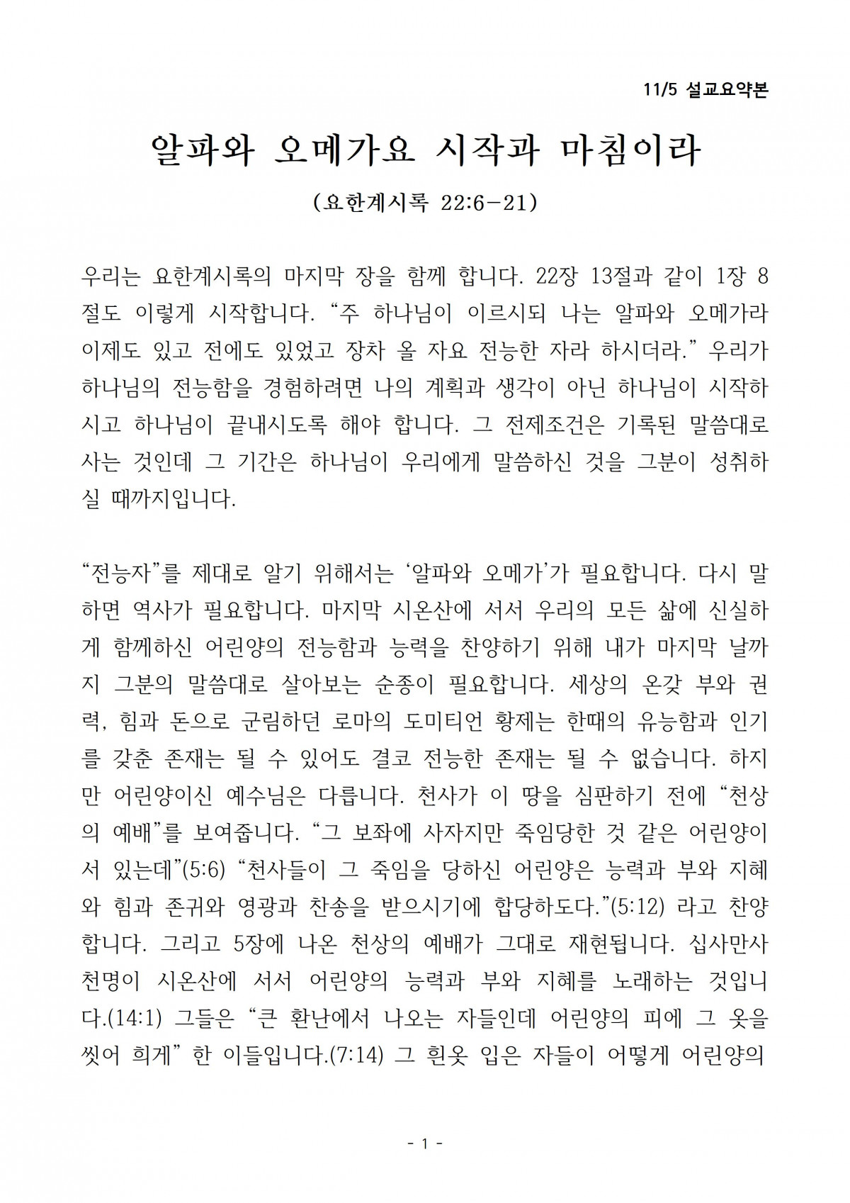 [2023년 11월 5일] 주일말씀요약 > 공지사항