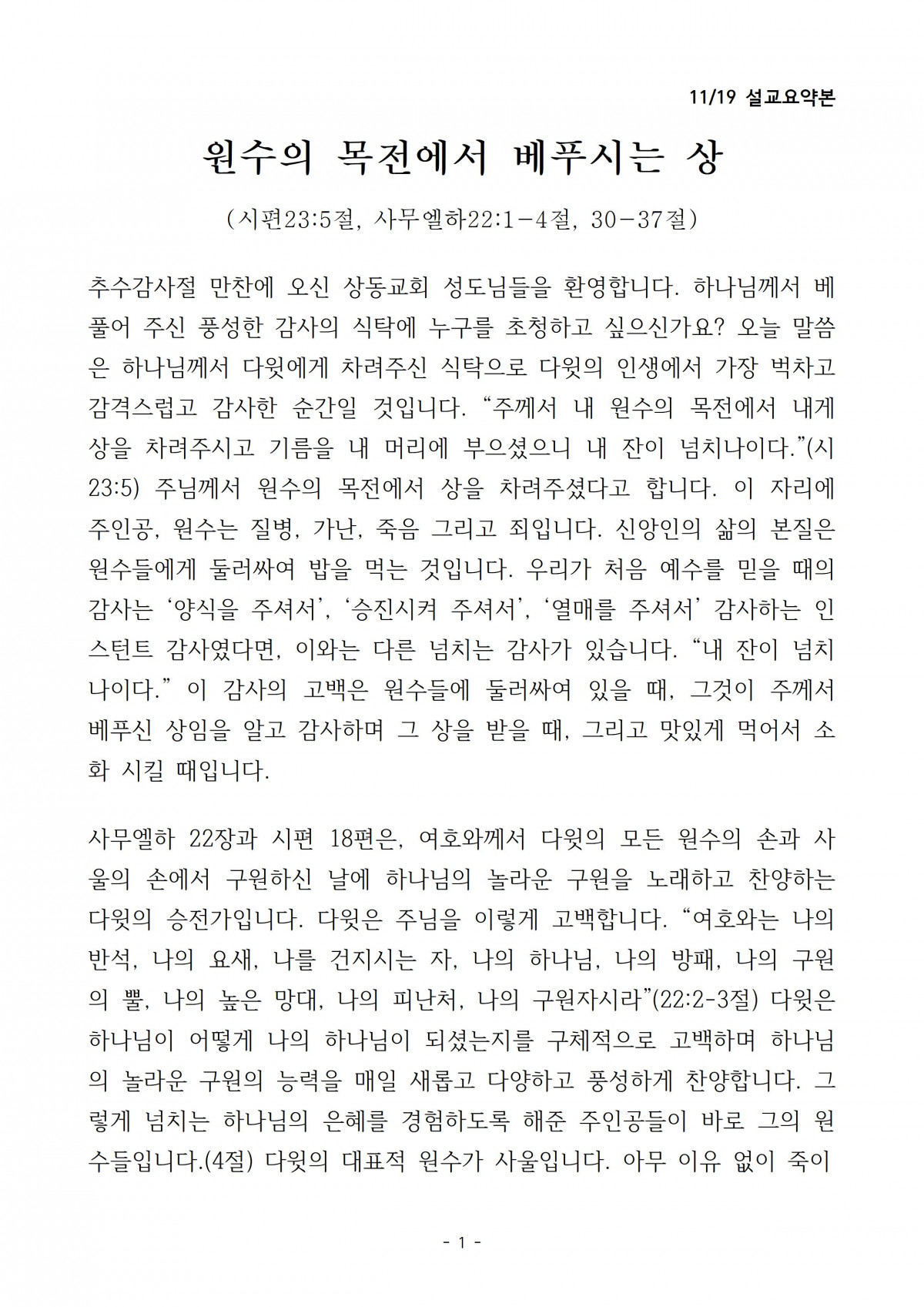 [2023년 11월 19일] 주일말씀요약 > 공지사항