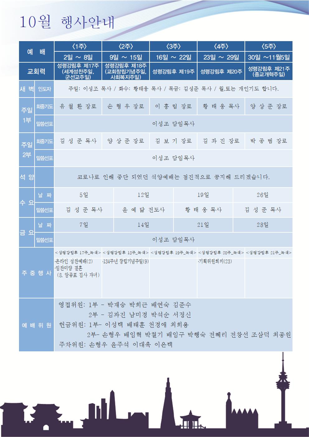 2022년 10월 [목회계획표] 행사안내 > 공지사항