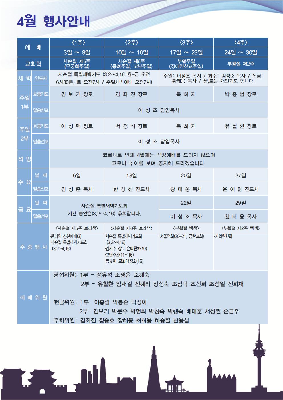 2022년 4월 [목회계획표] 행사안내 > 공지사항