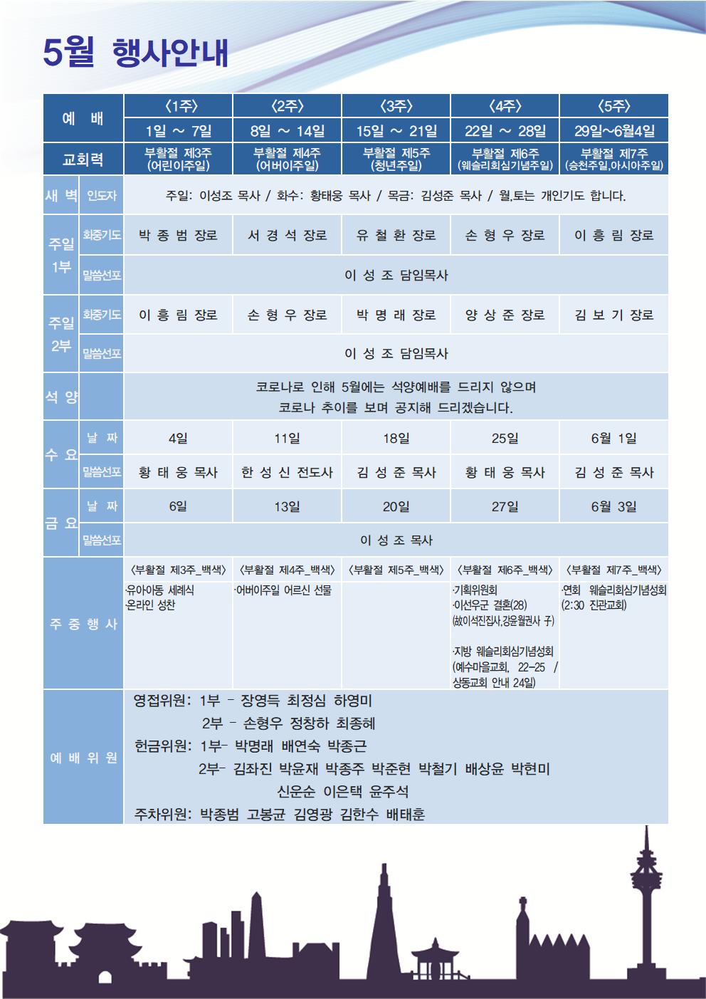 2022년 5월[목회계획표] 행사안내 > 공지사항