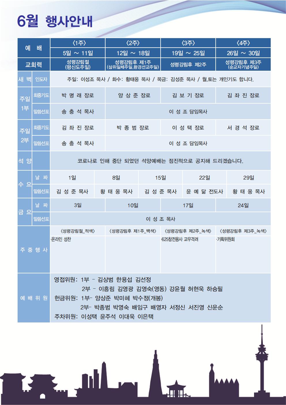 2022년 6월[목회계획표] 행사안내 > 공지사항