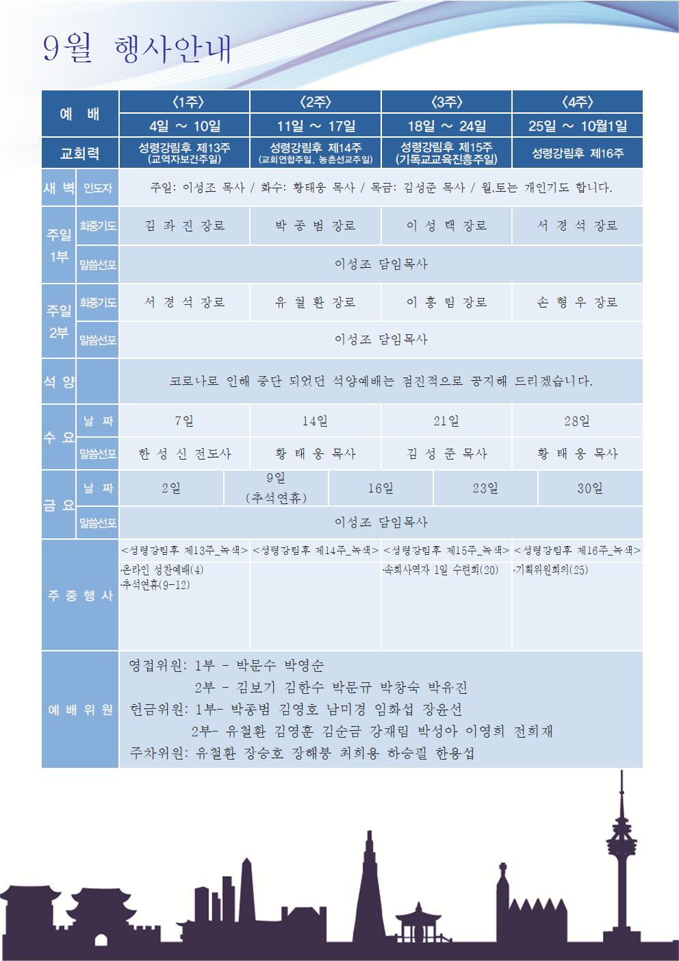 2022년 9월 [목회계획표] 행사안내 > 공지사항
