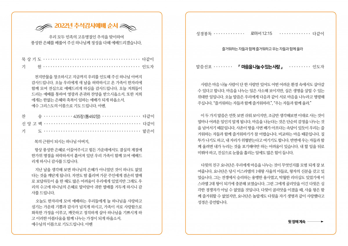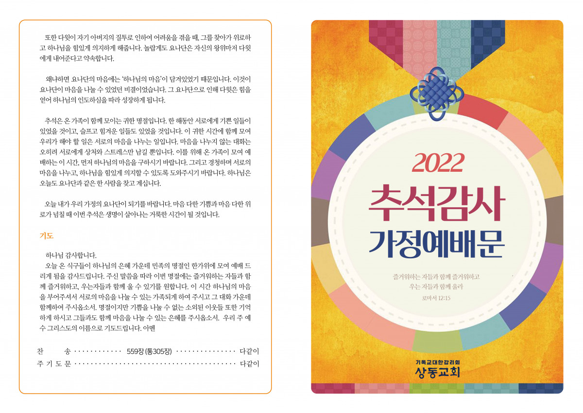 행복한 추석 연휴 되시길 기원드리며 가정예배시 활용하시기 바랍니다.