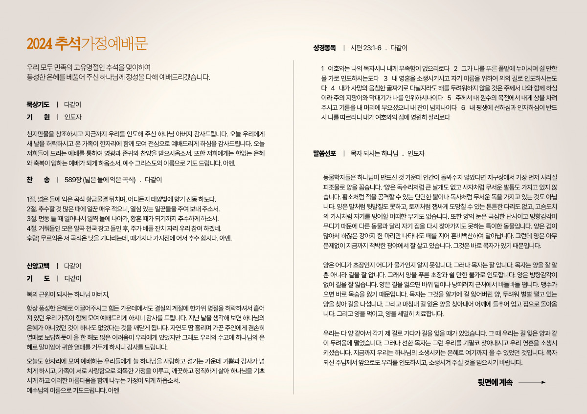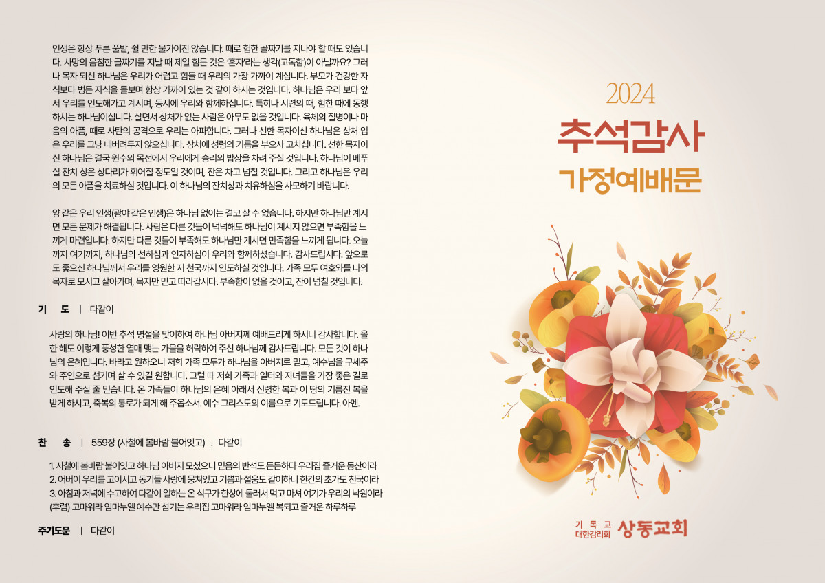 행복한 추석 연휴 되시길 기원드리며 가정예배시 활용하시기 바랍니다.