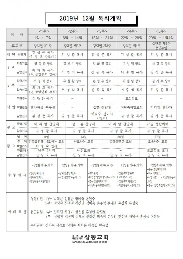12월목회계획표 > 주보