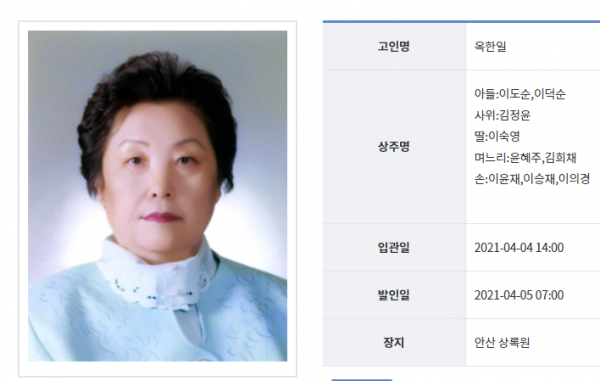 ● 발인예식: 5일(월) 오전 6시 30분(1층 영결식장)