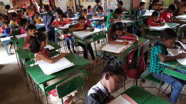 지금 까지 교제해온 보람의 결과로 학생이 90명 되는 자그만 동네 학교의 강당을 빌려, 미술 대회를 열었습니다.