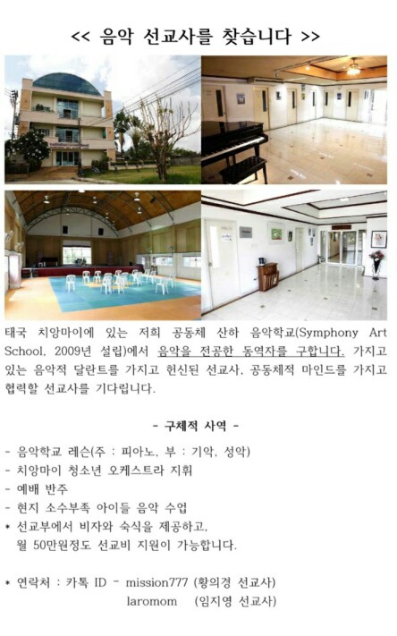 태국 황의경 임지영 선교사ㅡ음악선교사를 찾습니다