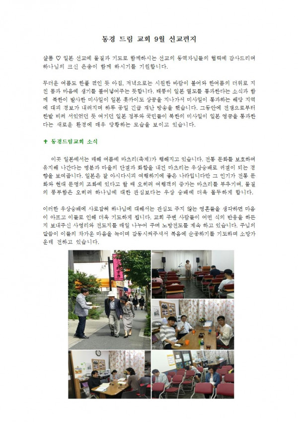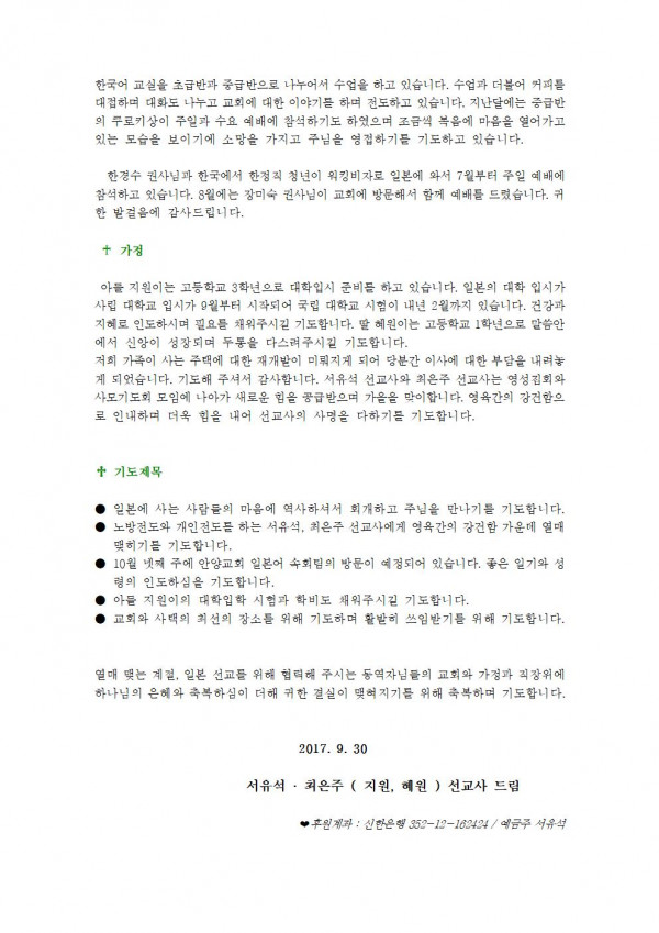 동경드림교회 서유석 최은주 선교사 > 선교이야기